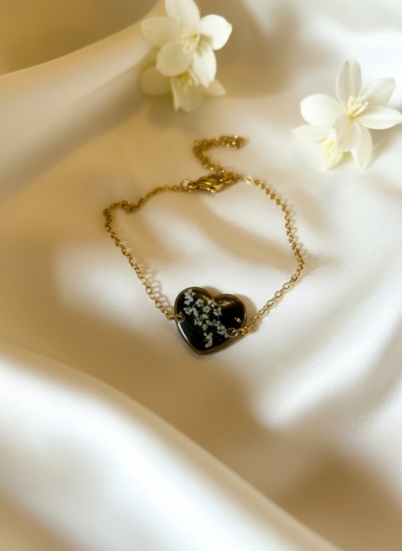 Delikatna, kobieca i pełna magii natury — bransoletka w kształcie serca z kwiatami zatopionymi w żywicy to wyjątkowy symbol uczuć i piękna, które nie przemija. 💖