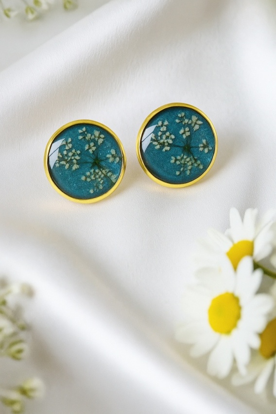 • Motyw Kwiatowy: Wewnątrz żywicy znajdziesz delikatne, naturalne kwiaty, co czyni je idealną biżuterią botaniczną i wspaniałym pomysłem na prezent dla niej.